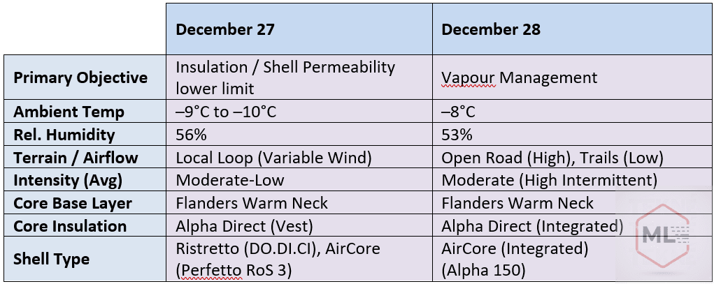 In winter kit testing I often aim to identify boundaries by pushing pieces in scenarios I suspect might lead to system failure. Here, a boundary is the point where a clothing system stops self-correcting and begins to drift, either toward sweat loading or progressive cooling.